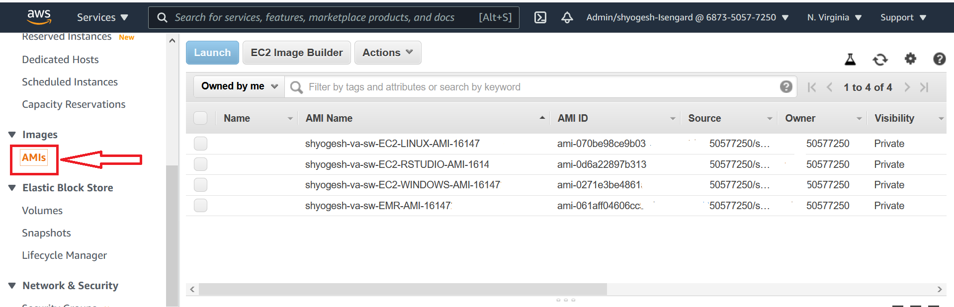验证 AMI 是否已创建 在 Amazon EC2 服务控制台中,在左侧导航中选择 AMI。您应该会看到 EC2-LINUX、EC2-WINDOWS 和 Amazon EMR 的 AMI。