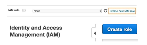 - 选择位于 AWS IAM 角色下拉列表旁边的创建新的 IAM 角色。要继续该过程,请突出显示 Amazon EC2 并继续到权限配置。