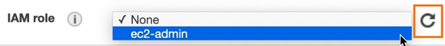 - 返回 Amazon EC2 选项卡,刷新 IAM 角色 下拉菜单,然后选择您的管理员角色以附加到新的 Amazon EC2 实例。